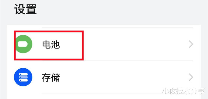 最初我们点击翻开手机上头的建设【建设】,然后往下滑,找到【电板】选项