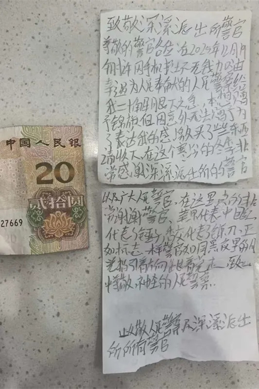 后该众人专程来到深溪派出所,将手写感谢信与生果送到民警手中,还将民警垫付的20元现款还了总结,字里行间满含对民警实时联接的真诚感谢,高度认同公安民警的包袱与担当。